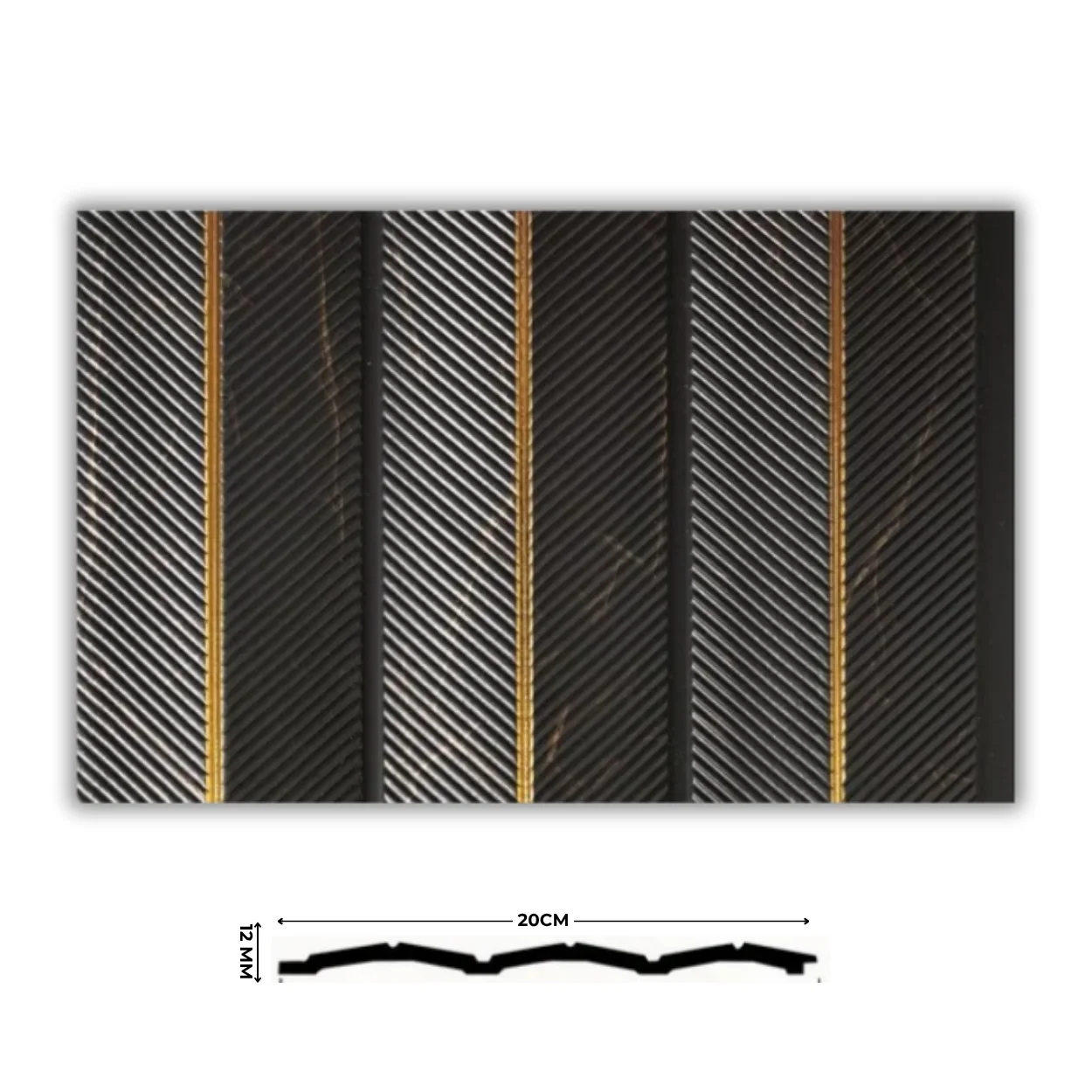 لوح بديل خشب كوري مستورد من خامة PS، بتصميم مخدد أنيق، عرض 20 سم وسُمك 12 مم، يمنح لمسة ديكور راقية ومقاومة عالية للرطوبة والعوامل الجوية.