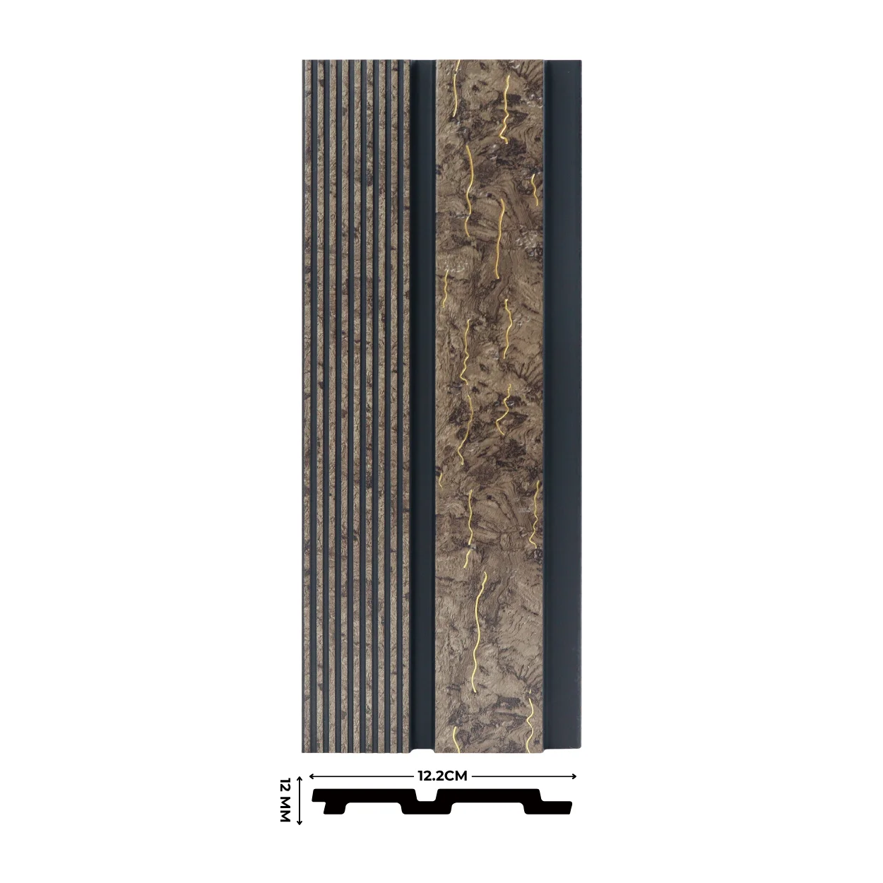 بديل خشب  مستورد من خامة PS، بتصميم عصري، عرض 12 سم وسمك 12 مم، يمنح لمسة ديكور راقية ومقاومة عالية للرطوبة والعوامل الجوية.
