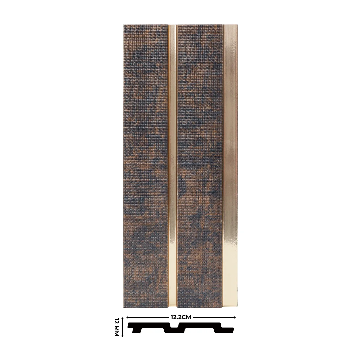 بديل خشب  مستورد من خامة PS، بتصميم عصري، عرض 12 سم وسمك 12 مم، يمنح لمسة ديكور راقية ومقاومة عالية للرطوبة والعوامل الجوية.
