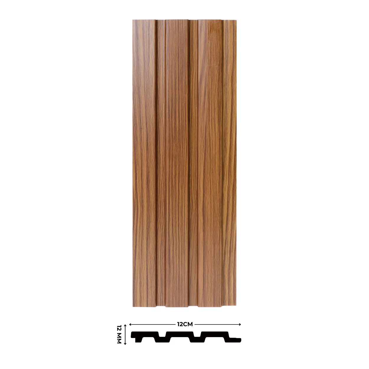 بديل خشب  مستورد من خامة PS، بتصميم عصري، عرض 12 سم وسمك 12 مم، يمنح لمسة ديكور راقية ومقاومة عالية للرطوبة والعوامل الجوية.