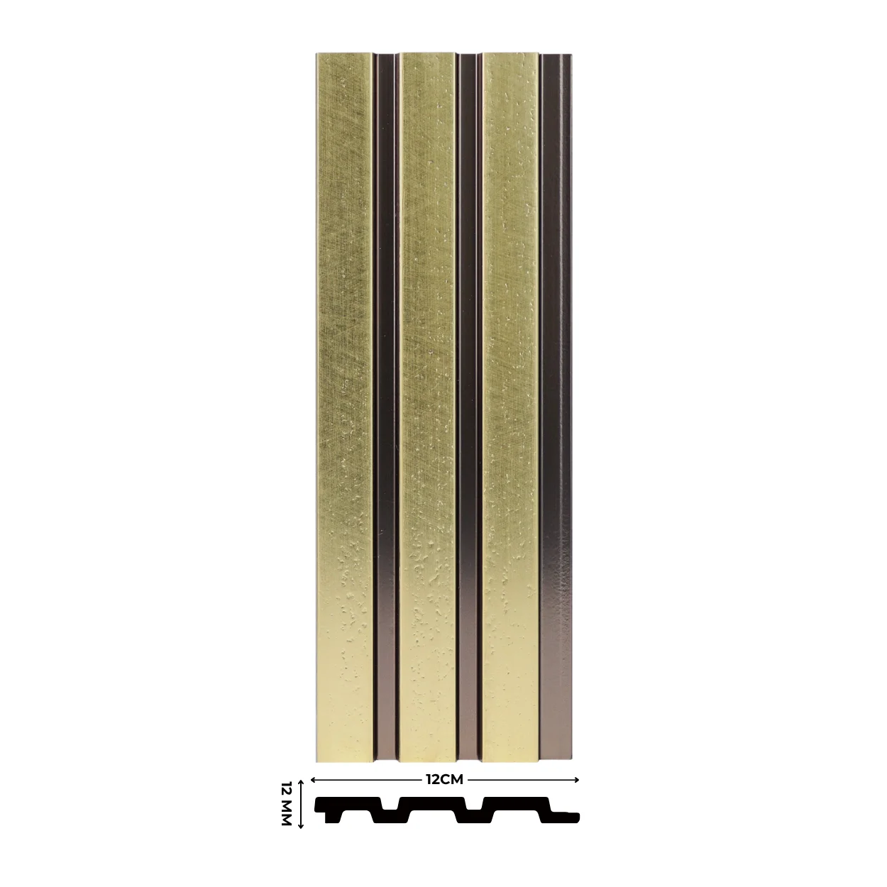 بديل خشب  مستورد من خامة PS، بتصميم عصري، عرض 12 سم وسمك 12 مم، يمنح لمسة ديكور راقية ومقاومة عالية للرطوبة والعوامل الجوية.