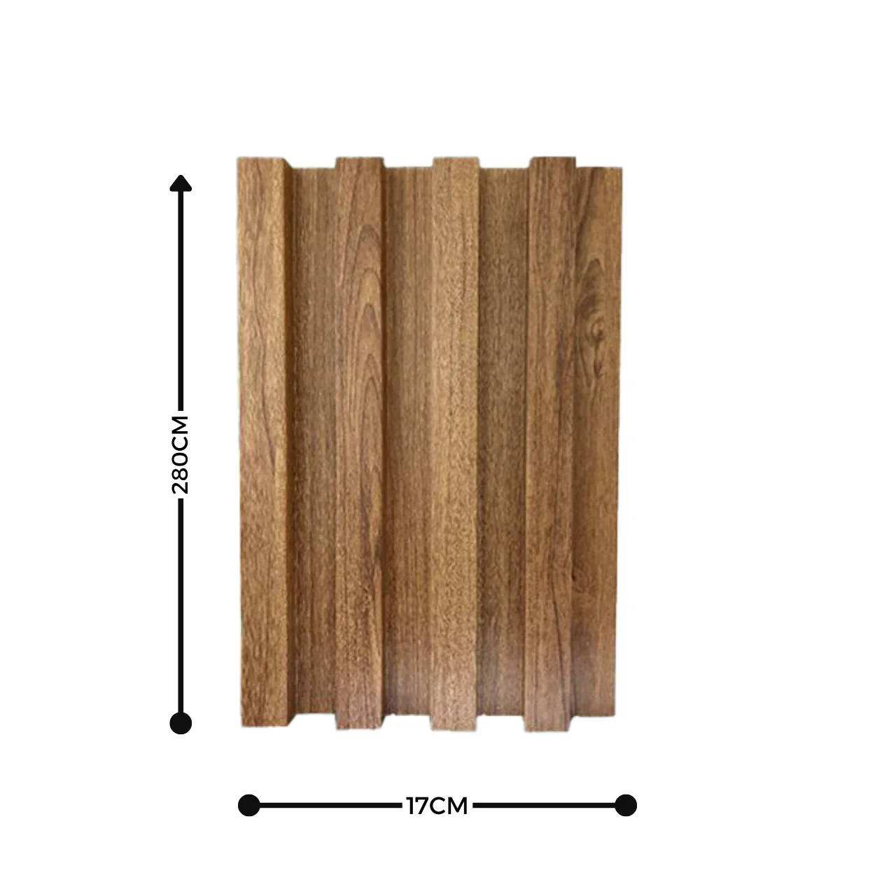 ألواح PVC بديل خشب بسمك 16 مم وعرض 17 سم، تصميم أنيق وعصري، مقاومة للمياه والرطوبة، وسهلة التركيب والتنظيف – مثالية لتغطية عيوب الجدران وإضافة لمسة أناقة للمكان.