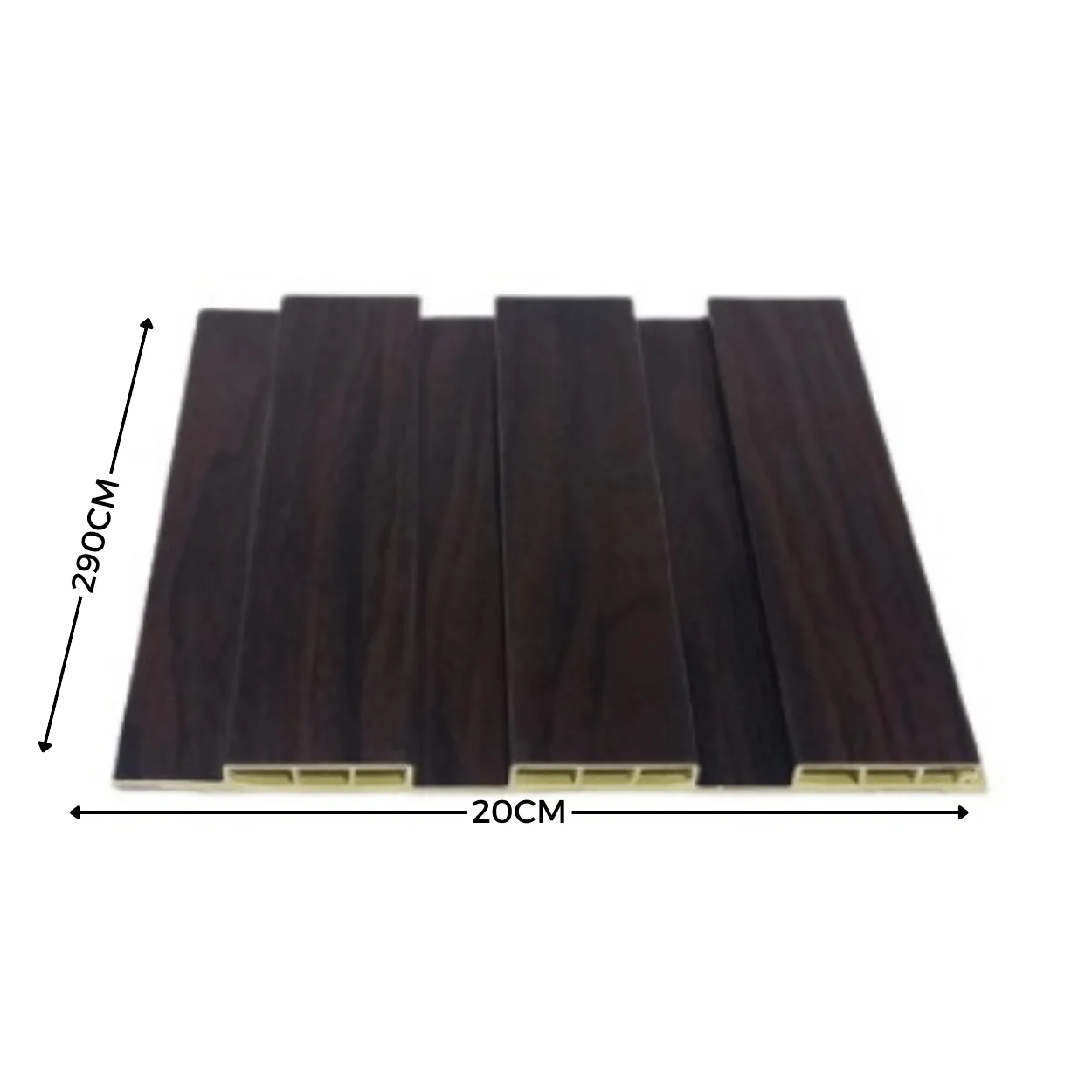 ألواح PVC بديل خشب بسمك 16 مم وعرض 20 سم، تصميم أنيق وعصري، مقاومة للمياه والرطوبة، وسهلة التركيب والتنظيف – مثالية لتغطية عيوب الجدران وإضافة لمسة أناقة للمكان.
